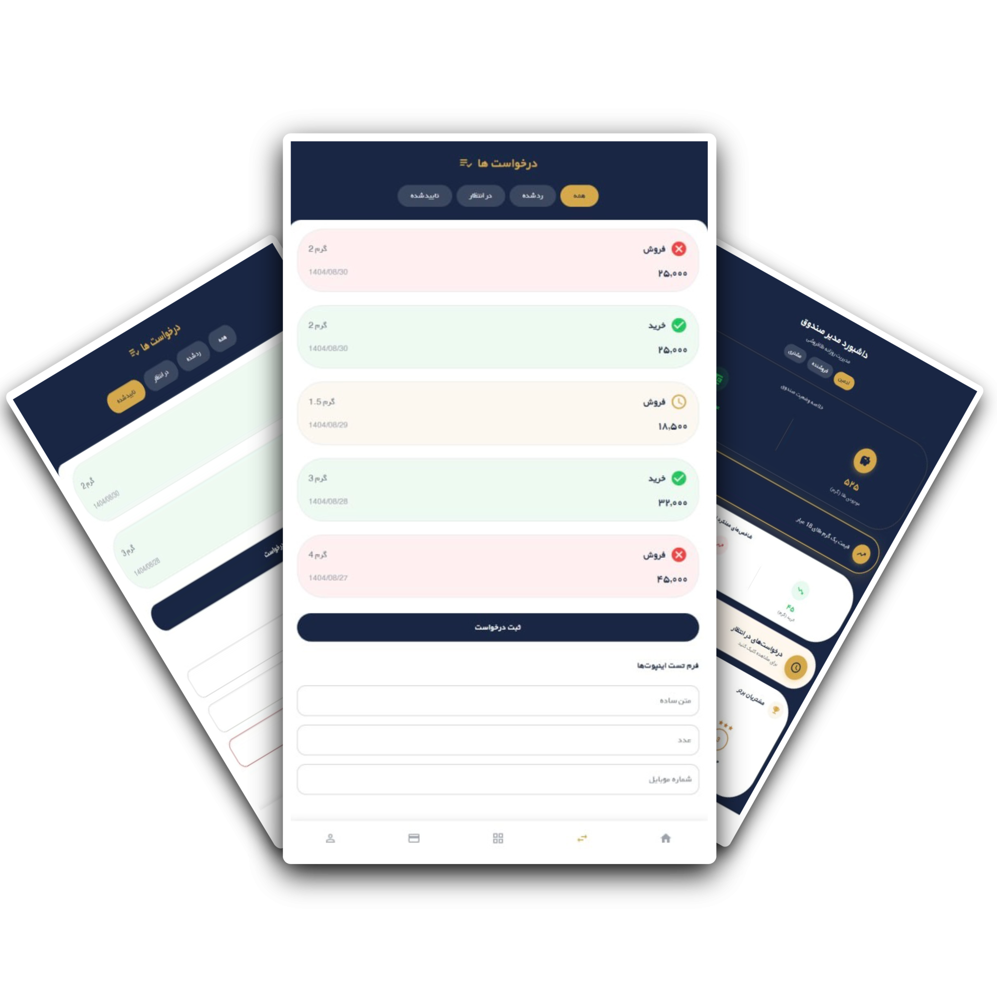 طلافروشان از طریق پنل اختصاصی خود میتوانند مشتریان را بهصورت متمرکز مدیریت کنند، درخواستهای خرید و فروش را ثبت و پیگیری نمایند و فرآیندهای کاری خود را منظم و شفاف پیش ببرند.